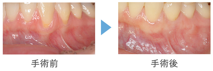 | 症例紹介 | ![]() ※根面被覆の手術前、手術後の症例です。 |